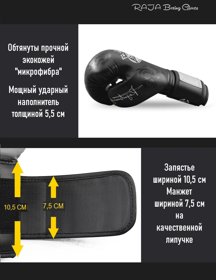 Тренировочный перчатки RAJA "DRAGON" BB12 разработана с учетом всех требований безопасности, идеально подходят для занятий муай-тай и ММА.
