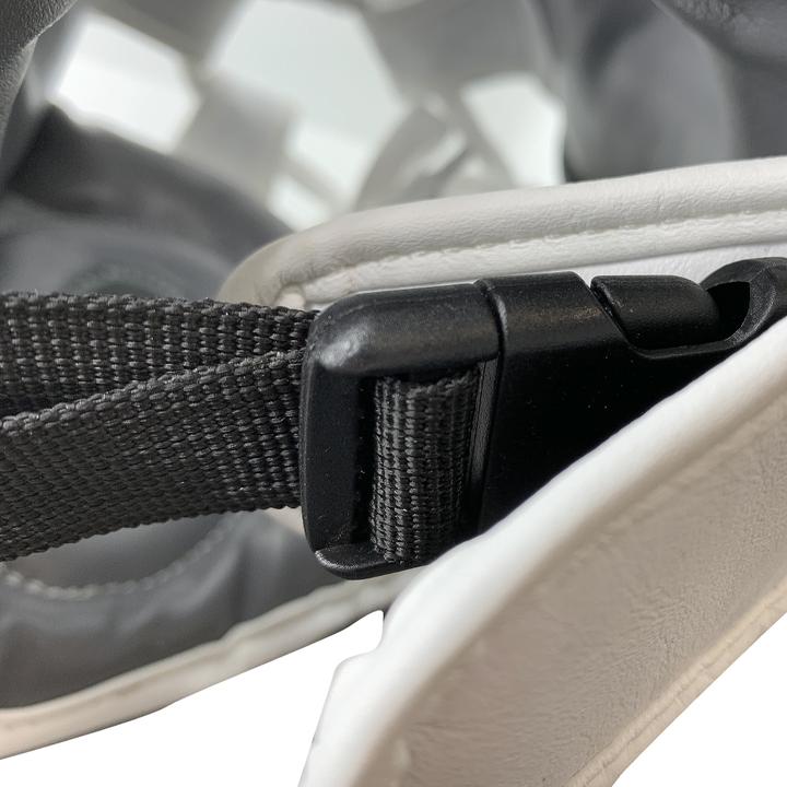 - Регулируемый шнурок сверху, мягкий ремешок на липучке сзади и регулируемый ремешок на подбородке.