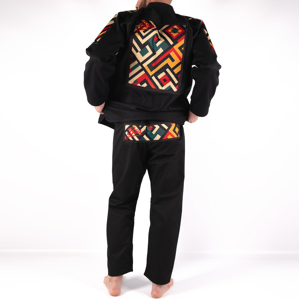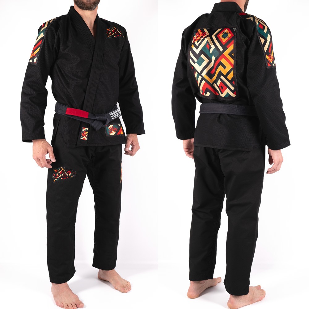 Данное ги имеет базовый дизайн, усилено тройными швами на всех стрессовых точках. Куртка ги изготовлена из легкого и сверхпрочного материала с воротником EVA, обеспечивая превосходный комфорт и качественный тренинг. Штаны рип-стоп с усиленными коленями. Эластичная веревка на петлях обеспечивает надежную фиксацию.