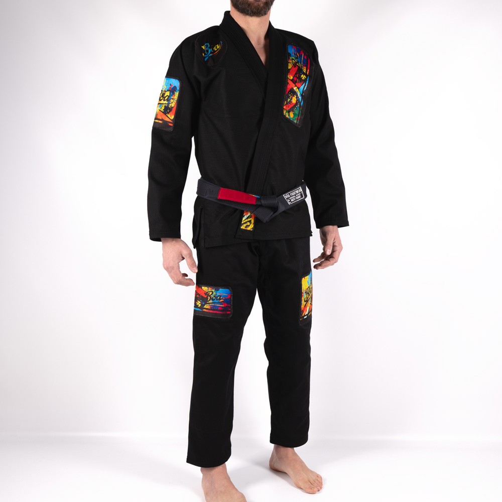 Данное ги имеет базовый дизайн, усилено тройными швами на всех стрессовых точках. Куртка ги изготовлена из легкого и сверхпрочного материала с воротником EVA, обеспечивая превосходный комфорт и качественный тренинг. Штаны рип-стоп с усиленными коленями. Эластичная веревка на петлях обеспечивает надежную фиксацию.