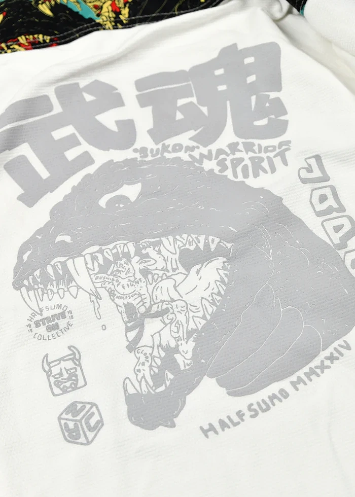 Это уникальное кимоно Half Sumo состоит из прочного и комфортного верха из жемчужной ткани и брюк из рип-стопа плотностью 10 унций, полностью готовых к интенсивным тренировкам.