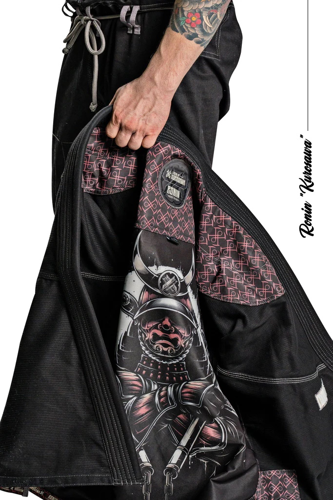 Кимоно Ronin "Kurosawa" - дань уважения известному японскому режиссеру Акире Куросаве: «Семь самураев» (1954), «Ёдзимбо» (1961) и пр. В 1992 году в Бруклине, магазину Ronin Brand вручили эксклюзивную награду Акиры Куросавы за самые признанные товары для традиционных боевых искусств. Художник Blackout Brother - большой поклонник Куросавы, для него было большой честью работать над дизайном данного кимоно.