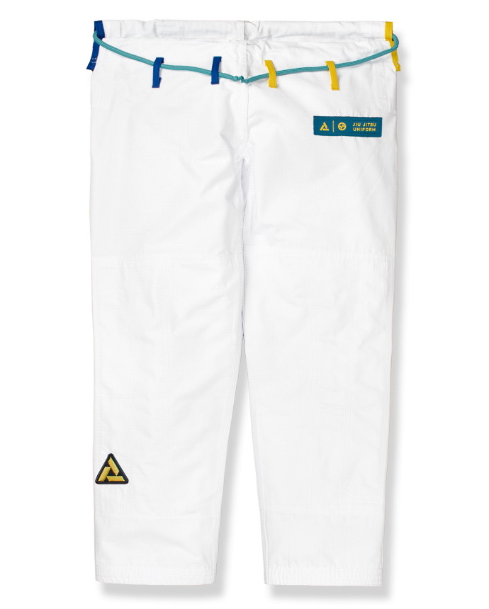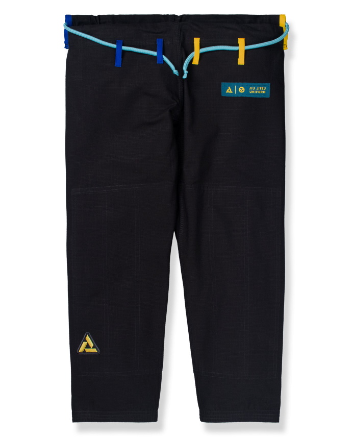 Модель "Alpha" имеет базовай дизайн в конрастном стиле, усилено тройными швами на всех стрессовых точках. Куртка имеет воротник EVA, изготовлена из 100% хлопка средней плотности. Штаны сделаны из легкого рип-стопа с двойными коленями от середины бедра до самого низа. Эластичная веревка на 4 петлях обеспечивает надежную фиксацию.