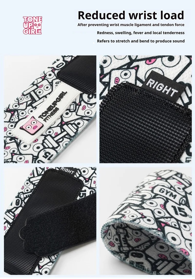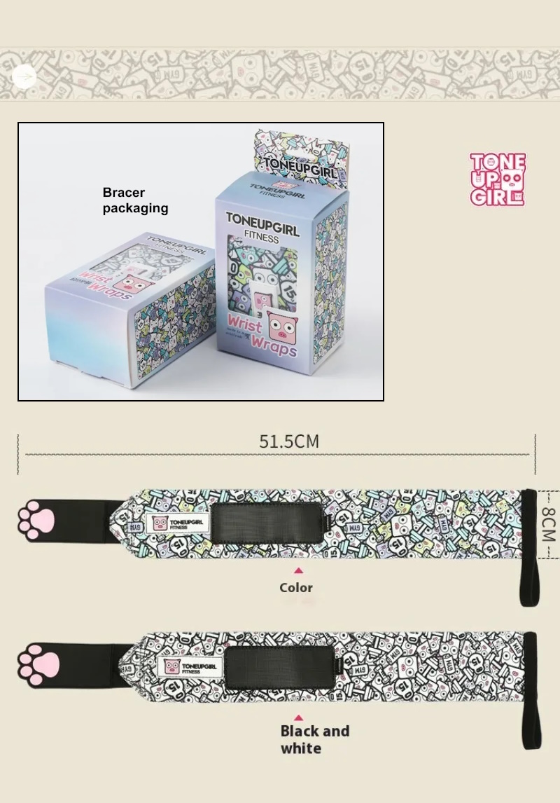 Женские кистевые бинты TONEUPGIRL улучшают поддержку и стабилизацию запястья, фиксируют и снижают нагрузку во время упражнений.