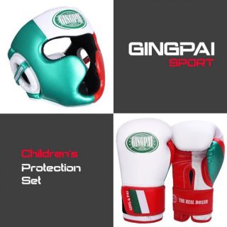 Детский боксерский комплект GINGPAI FID17 GREEN изготовлен из износостойкой PU кожи, она устойчива к высоким нагрузкам.