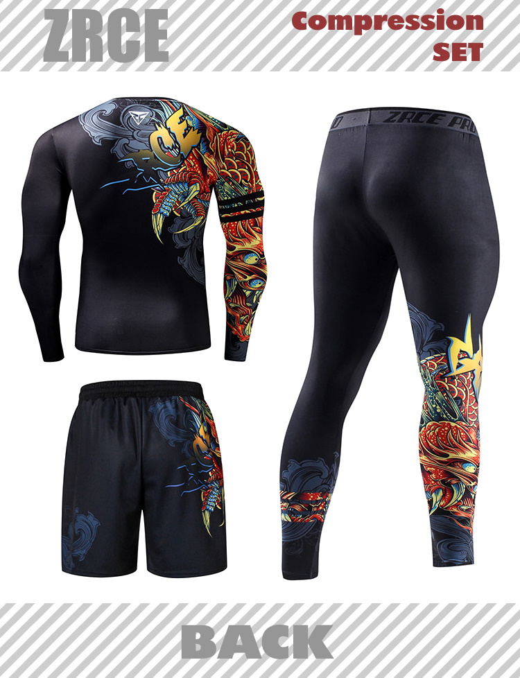 Детали: Тренировочный костюм ZRCE "FIRE DRAGON" изготовлен из эластичного материала, отводит влагу, обеспечивает всестороннюю защиту от бактерий и ссадин. Средняя компрессия ткани поможет поддержать оптимальную температуру тела и снизить лишнюю вибрацию мышц. Костюм имеет плоские швы, они не натирают тело и обеспечивают нужный комфорт. Великолепный принт выполнен методом сублимации.