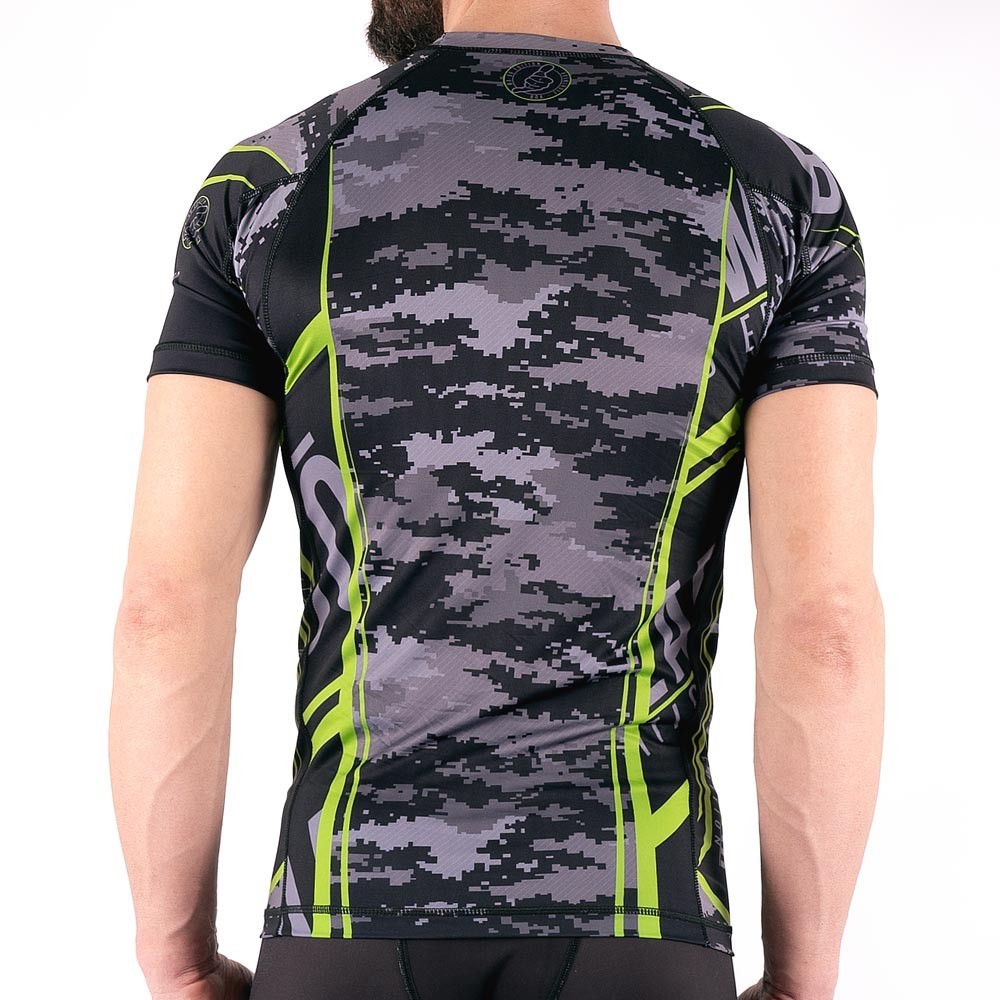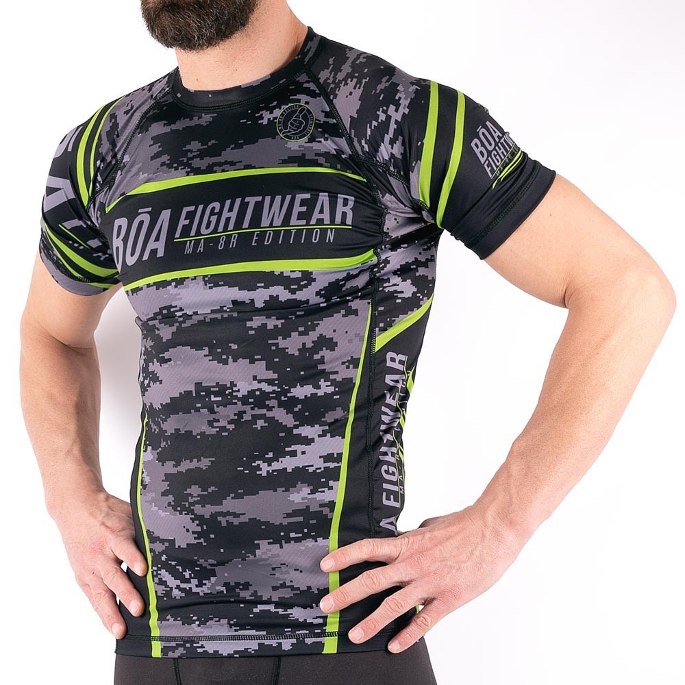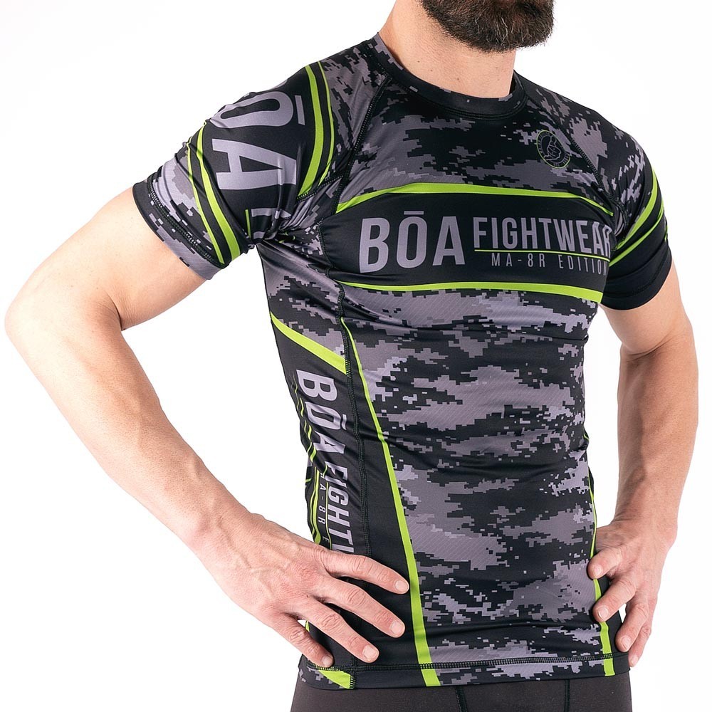 Рашгард имеет смелый дизайн, а шорты для борьбы имеют простой и функциональный вид. Этот костюм выделит вас из толпы и позволит вам сосредоточиться на своем выступлении.