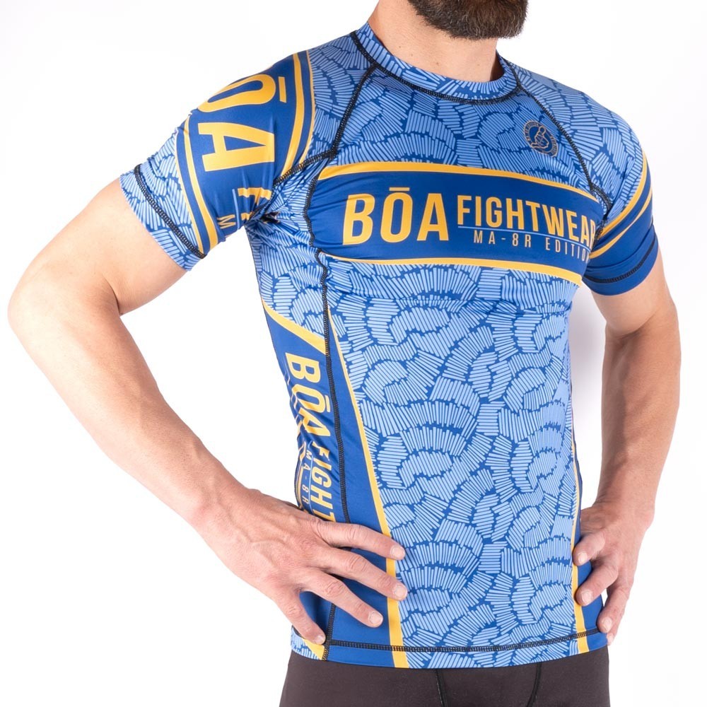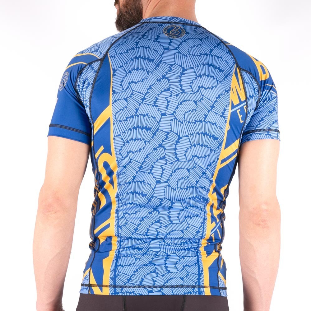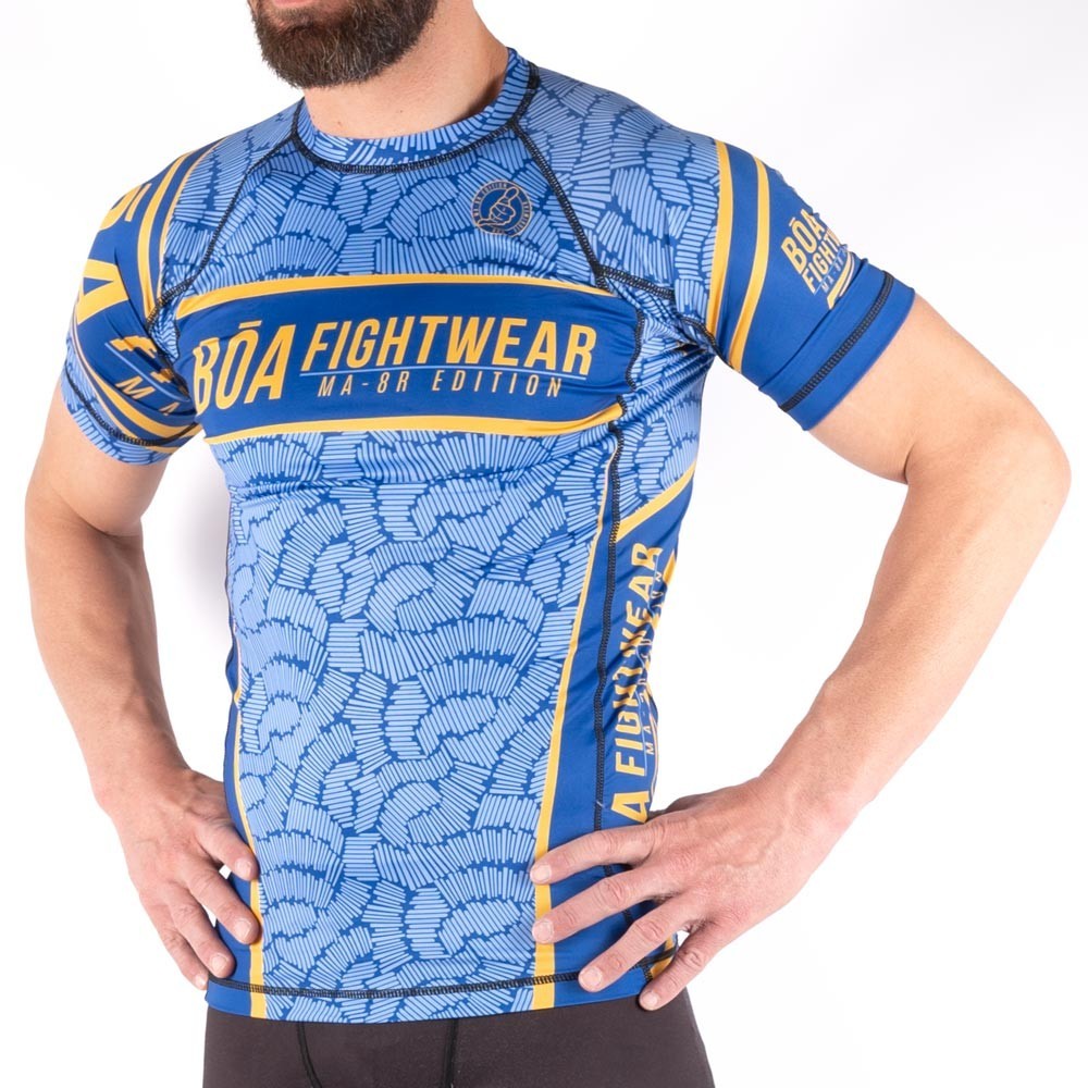 Рашгард имеет смелый дизайн, а шорты для борьбы имеют простой и функциональный вид. Этот костюм выделит вас из толпы и позволит вам сосредоточиться на своем выступлении.