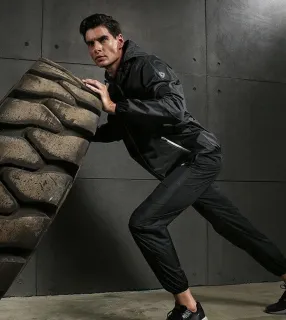 - Эластичные манжеты на поясе, руках и лодыжках сохраняют внутреннее тепло и дают больший "эффект сауны".