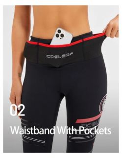 - Высокий пояс имеет сетчатые карманы и внутренний шнурок для улучшения фиксации, что отлично подходит для занятий с высокой интенсивностью.