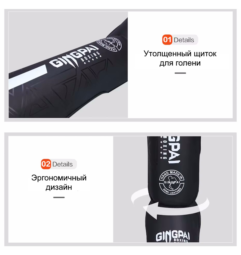Щитки на ноги GINGPAI RK1 Series выполнены в пяти расцветках, они будут поглощать самые сильные удары, так что вы можете бить сильнее и тренироваться дольше. Почувствуйте воздействие, а не боль!