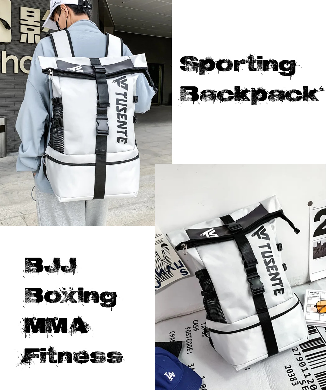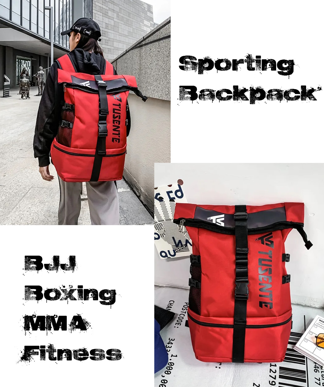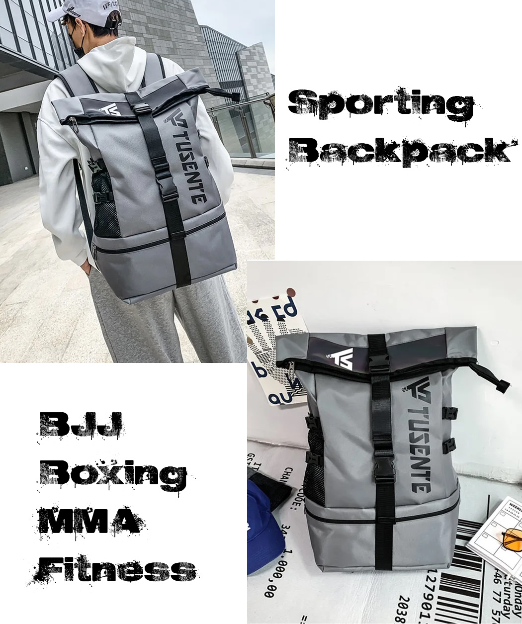 Спортивный рюкзак TUSENTE имеет просторное отделение с верхней загрузкой на замке-молнии, в нижней его части расположен вместительный отсек для мокрой одежды, обуви или аксессуаров (кимоно, перчатки, шлем).