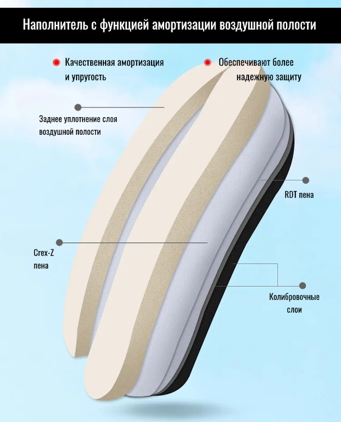 - Наполнитель "Air Сavity" (Воздушная полость) улучшает амортизацию