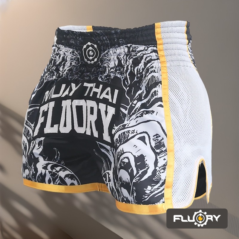 Детали: Тайские шорты FLUORY "TIGER" S36 - прочные и очень удобные, обеспечат спортсмена необходимым комфортом и мобильностью во время тренинга.