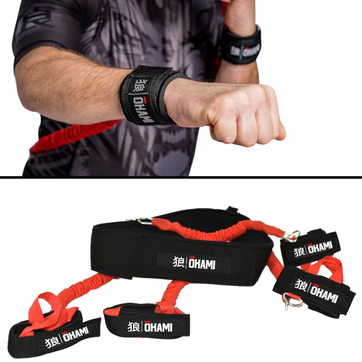 Тренировочную систему (тренажер) Okami Hydra можно применять при "бое с тенью", работе в партере и других физических упражнениях, где нужна дополнительная нагрузка на руки или ноги. Уровень сопротивления регулируется за счет эластичных строп, которые предлагают нагрузку в 9, 12 и 21 кг. Тренажер компактный, что позволяет использовать его не только в зале и дома, но и во время путешествий.