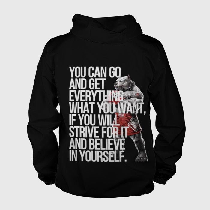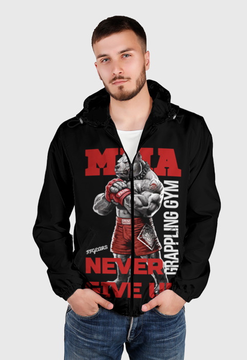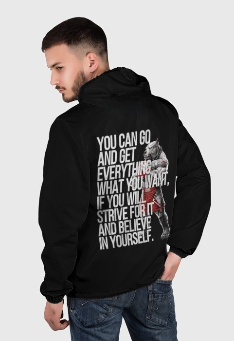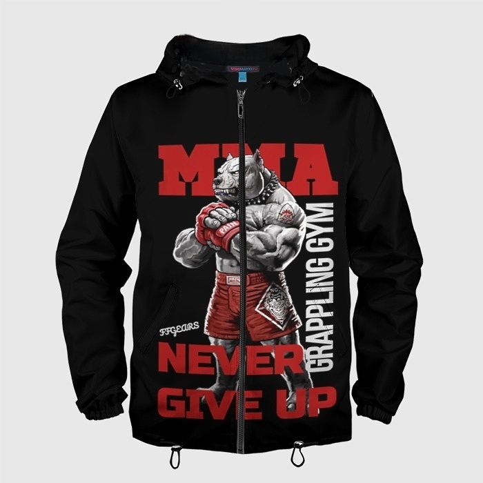 Свободная легкая ветровка с капюшоном, на фронтальной молнии. Сделана из плотной влагозащитной ткани, по поверхности которой нанесен принт.