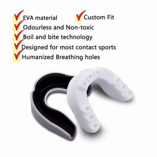 2. Идеальный контур: Она изготовлена из материала EVA, после процедуры "варки" капа повторяет контуры зубов, обеспечивая идеальную посадку и оптимальную защиту зубов, челюсти и щек.