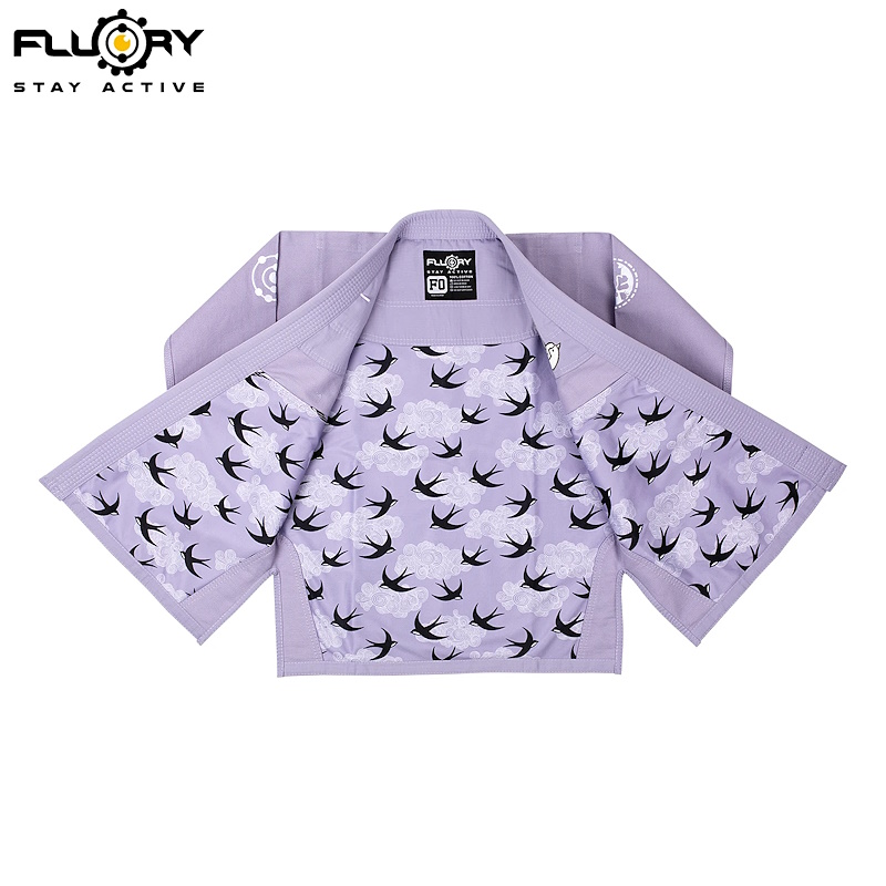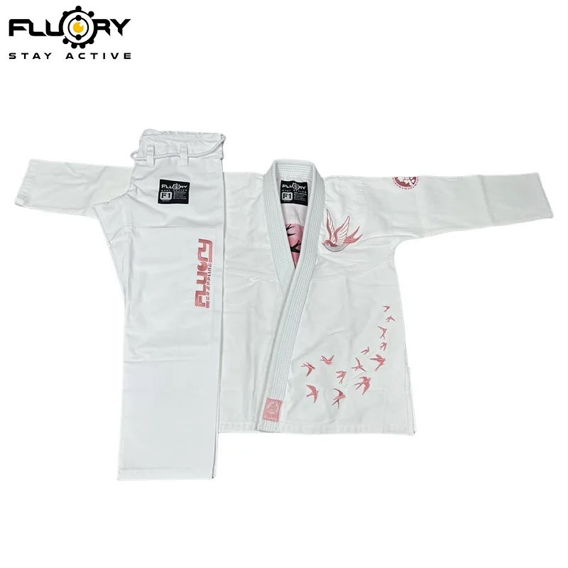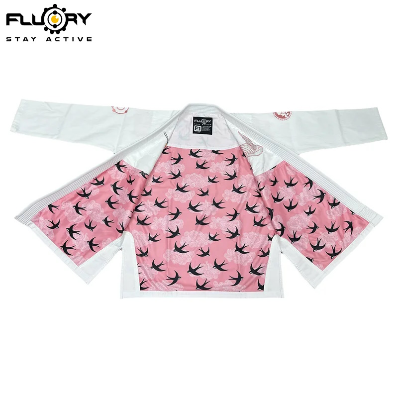 Куртка кимоно "Fighting Swallow" изготовлена из ткани жемчужного плетения, что делает ее более прочной и долговечной. На куртке кимоно вышито множество рисунков, добавляющие кимоно стильный вид.