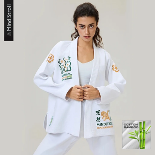 Женское кимоно Brazilian JJ для бразильского джиу-джитсу сочетает комфорт, лёгкость и высокие эксплуатационные качества. Материал куртки представляет собой смесь хлопка и бамбукового волокна, обеспечивающую износостойкость и защиту от неприятного запаха благодаря антибактериальным и гипоаллергенным свойствам бамбука.