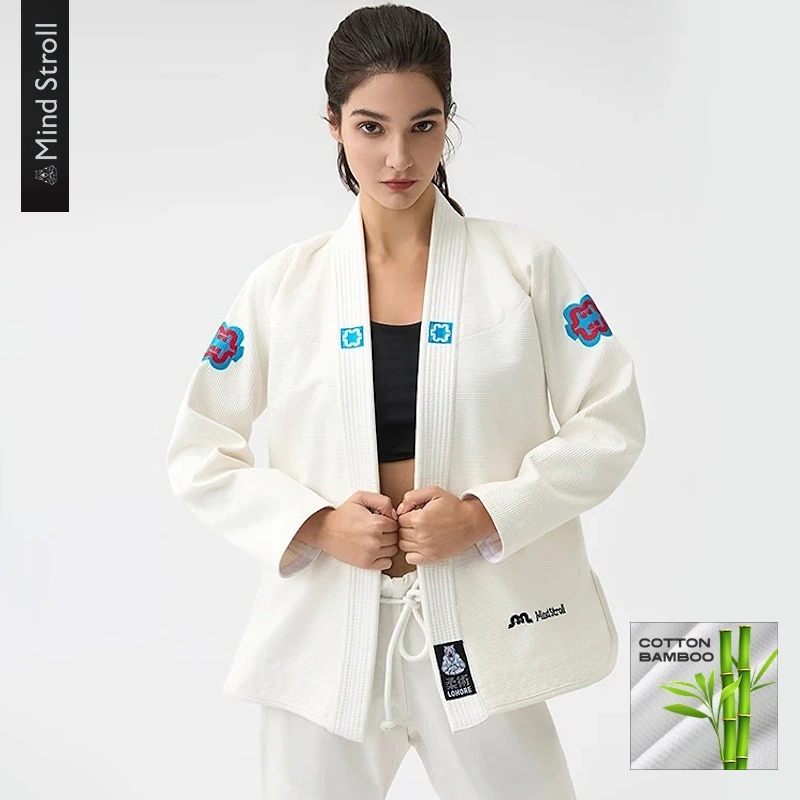 Женское ги Krappy для занятий бразильским джиу-джитсу сочетает комфорт, лёгкость и высокие эксплуатационные качества. Материал куртки представляет собой смесь хлопка и бамбукового волокна, обеспечивающую износостойкость и защиту от неприятного запаха благодаря антибактериальным и гипоаллергенным свойствам бамбука.